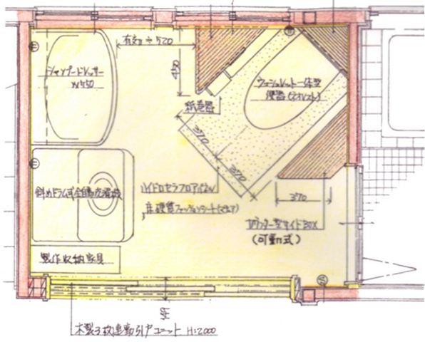 利用者様の危険・不都合・不安を解消することは今を幸せに暮らしていただくこと。福祉住環境整備における予防的計画をとり、将来必要となりうる様々な下準備をすることとした。主には、どのような歩行補助用具を使われても取り回しがラクな面積に拡張したり、 安全に使用できる便器にするなど、様々なケースを想定した改造計画とした。